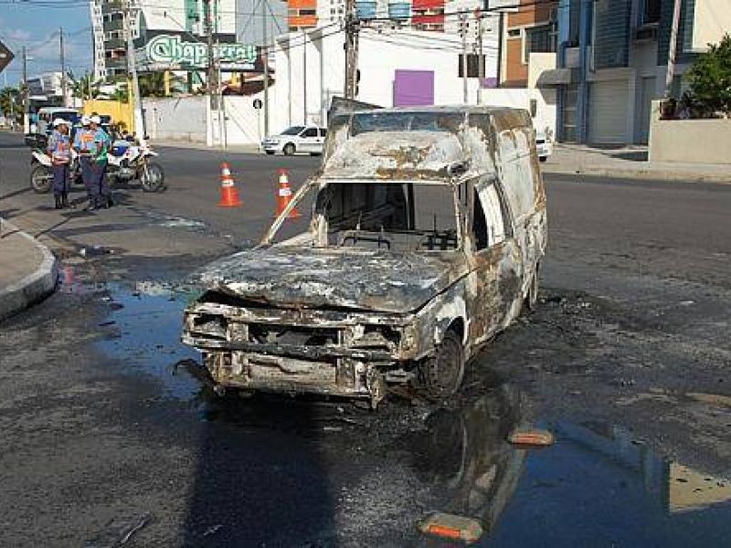 Carro movido a gás pega fogo em Mangabeiras