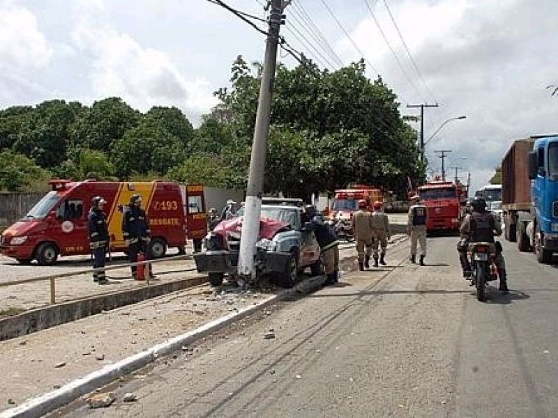 Viatura da Radiopatrulha colide com um poste em Maceió
