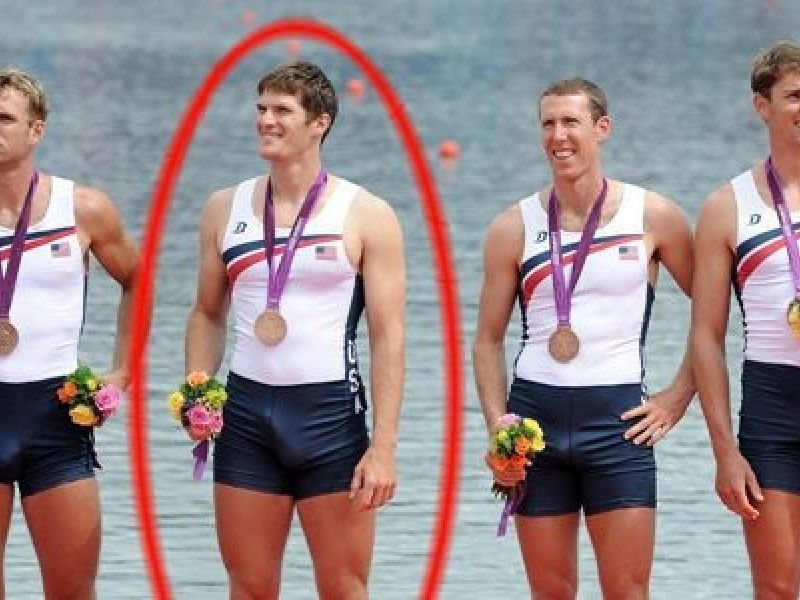 No pódio, remador americano mostra uma esquisita “empolgação”