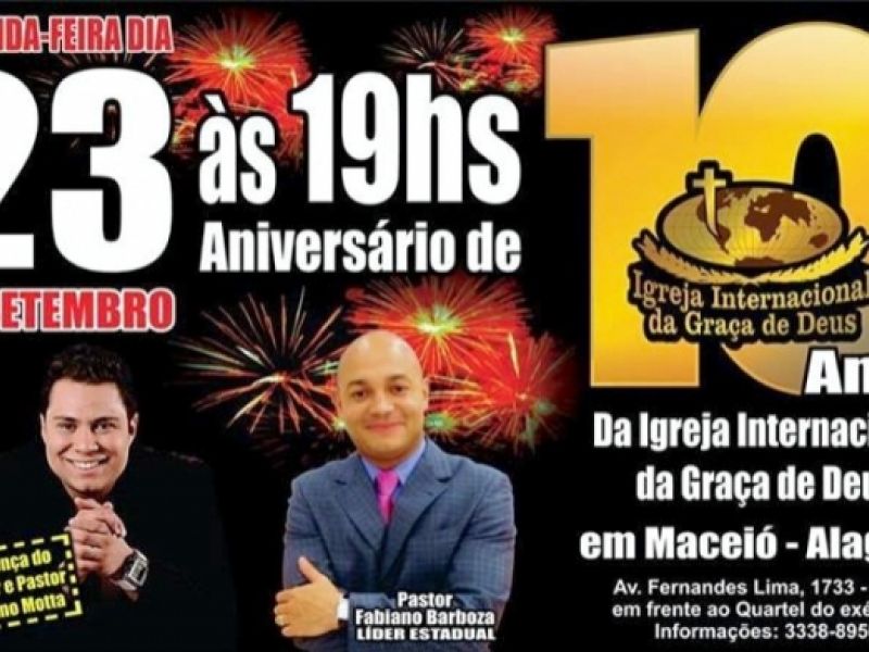 Igreja da Graça de Deus comemora 10 anos em Alagoas