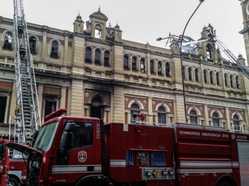 Bombeiros fazem rescaldo de incêndio no Museu da Língua Portuguesa