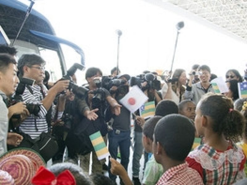 Alunos da rede estadual recepcionam jogadores olímpicos do Japão