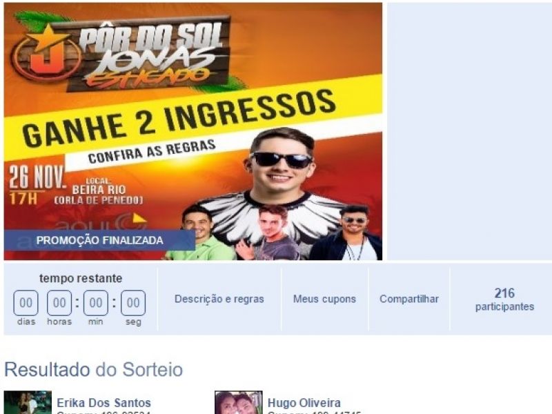 25 de novembro de 2016 Hugo Oliveira e Erika dos Santos são os vencedores da promoção Pôr do Sol com Jonas Esticado