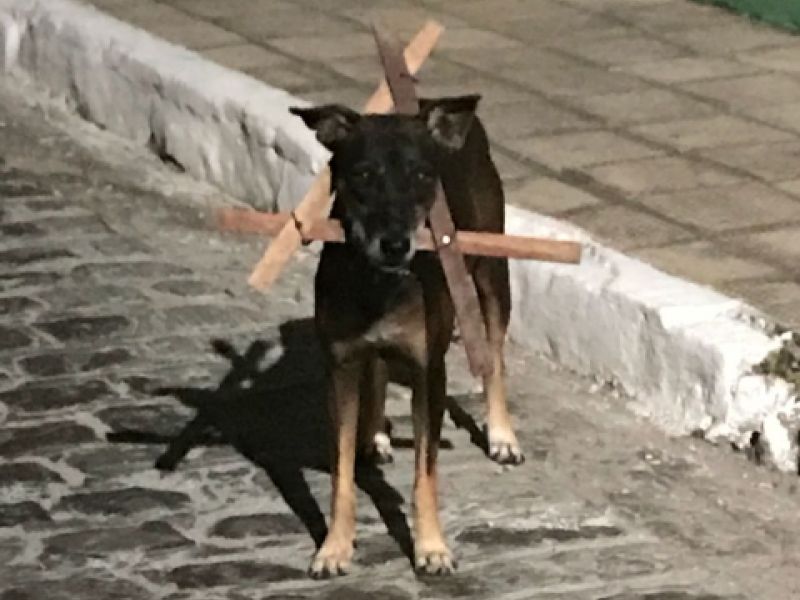 26 de janeiro de 2018 Foto de cão com pescoço envolto com madeira e pregos indigna população penedense