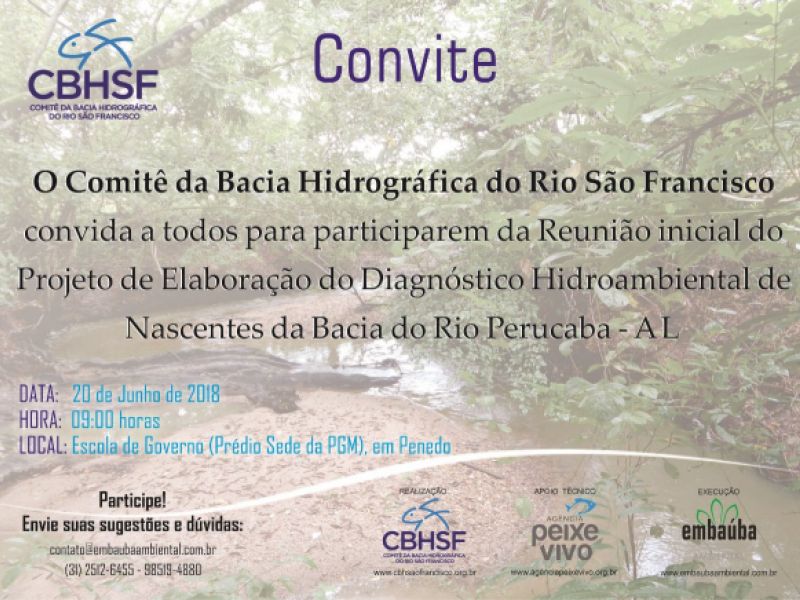 19 de junho de 2018 Reunião do Projeto de Elaboração do Diagnóstico Hidroambiental de Nascentes acontecerá na quarta (20) em Penedo