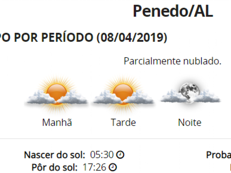 O TEMPO E A TEMPERATURA: Penedo terá segunda-feira de tempo parcialmente nublado