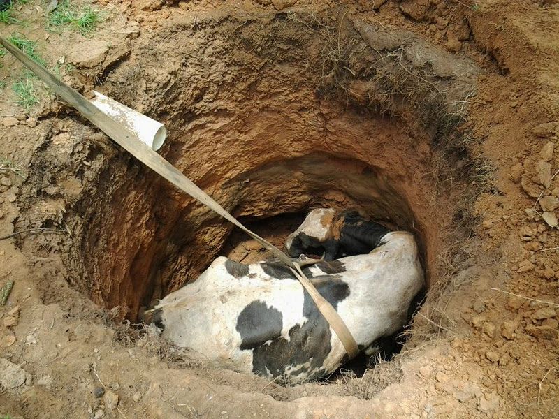 2 de agosto de 2019 Vaca cai em poço de quase 15 metros e é resgatada sem vida pelo Corpo de Bombeiros em Penedo