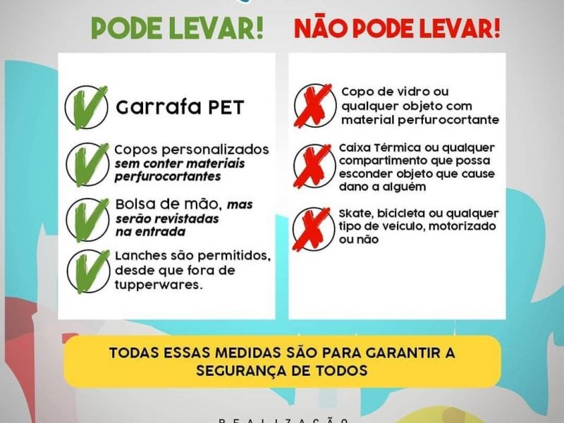 9 de janeiro de 2020 Prefeitura divulga o que pode e o que não pode levar para a arena de shows da festa de Bom Jesus de Penedo