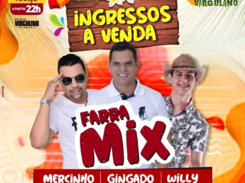 4 de março de 2020 Com Willy Vaqueiro, Mercinho e Gingado, Farra Mix acontece no sábado, 07, em Penedo