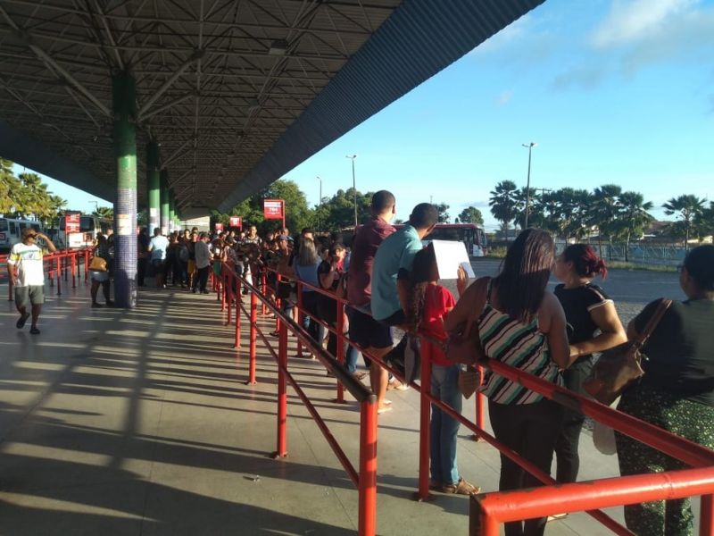 13 de abril de 2020 Coronavírus: Terminal de ônibus do Benedito Bentes, em Maceió, tem aglomeração de pessoas