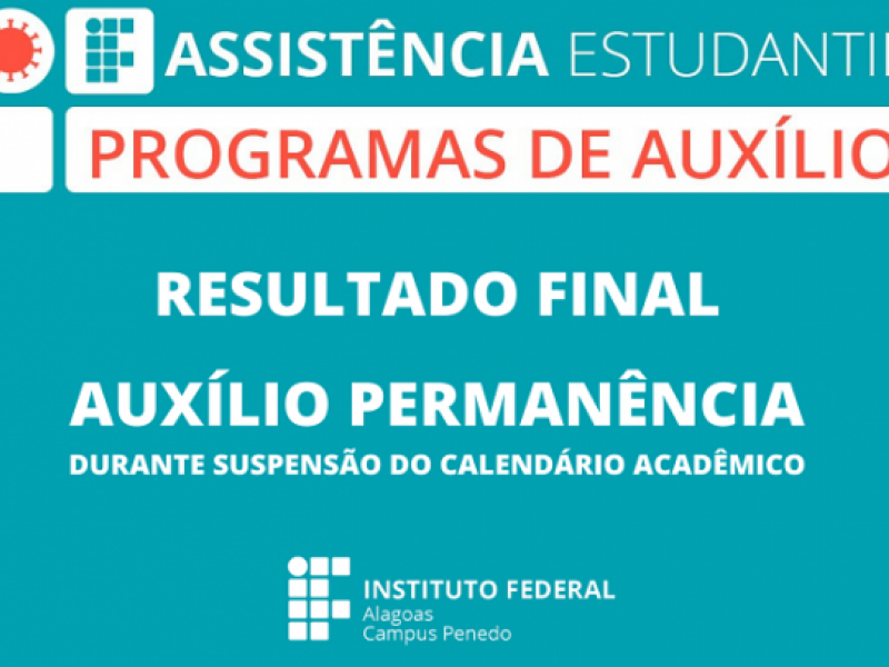 23 de maio de 2020 Divulgado resultado final do auxílio permanência durante suspensão de aulas do Ifal Penedo