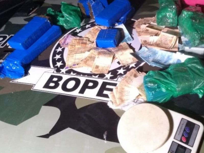 23 de maio de 2020 Após denúncia, Bope apreende 6,8 Kg de maconha, moto e R$ 5.700 na parte baixa de Maceió
