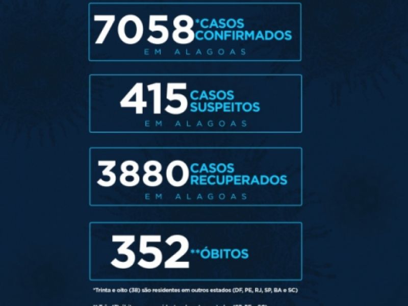 26 de maio de 2020 Estado de Alagoas chega a 7.058 casos de Covid-19 e 352 óbitos, aponta novo boletim
