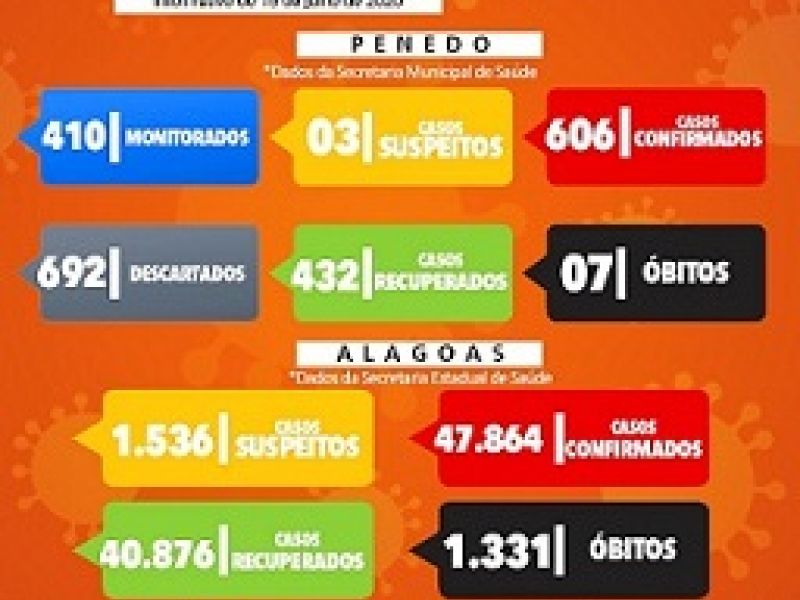 15 de julho de 2020 Penedo tem mais de 600 casos confirmados de Covid-19, informa boletim epidemiológico