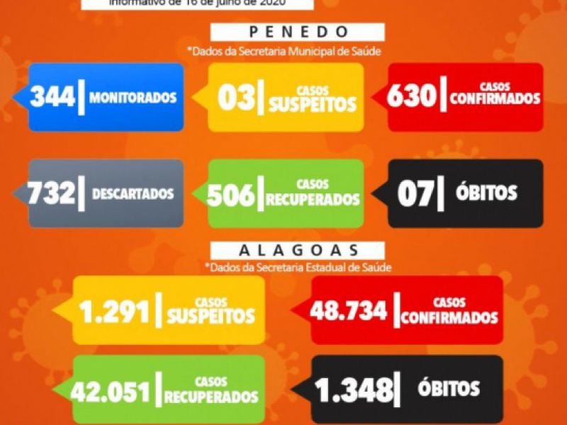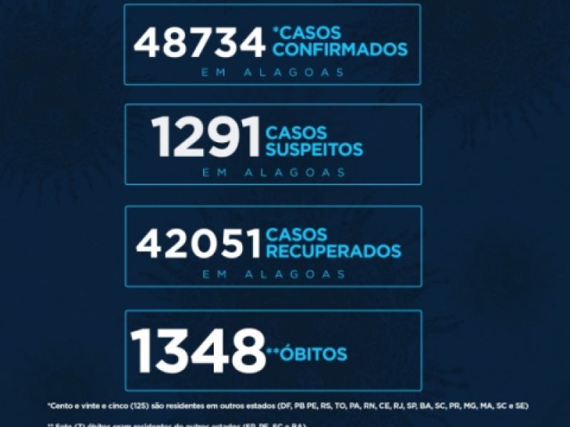 16 de julho de 2020 Alagoas tem 48.734 casos da Covid-19 e 1.348 óbitos, segundo boletim desta quinta, 16