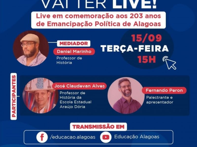 11 de setembro de 2020 Seduc promove live em comemoração aos 203 anos de Emancipação Política de Alagoas