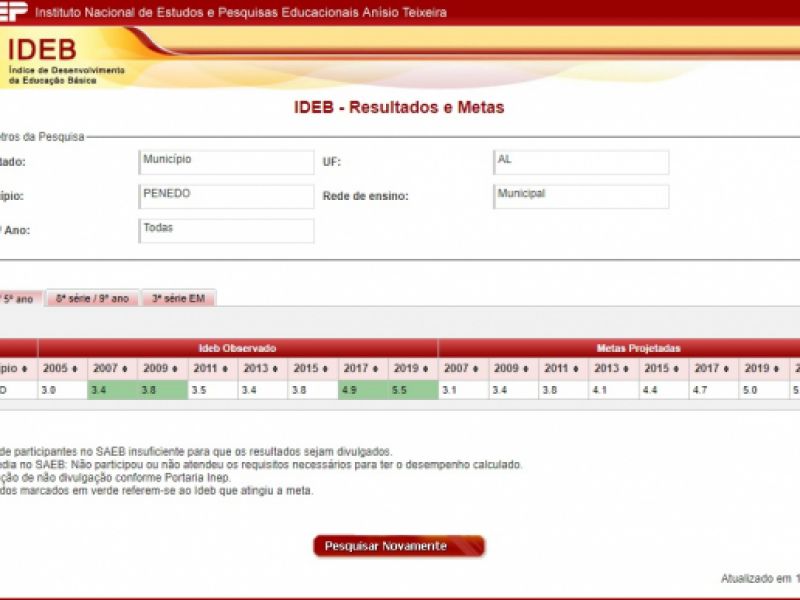 17 de setembro de 2020 Ideb: município de Penedo ultrapassa metas estipuladas pelo Ministério da Educação