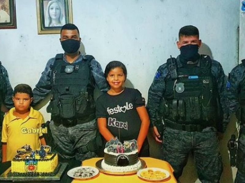 14 de junho de 2021 Militares do 11º BPM atendem desejo de irmãos de Penedo que sonham em ser policiais
