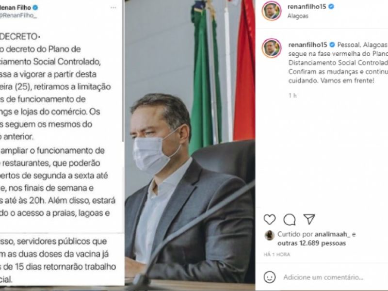 23 de junho de 2021 Em novo decreto, Alagoas amplia horário de funcionamento de bares, restaurantes, shoppings e comércio