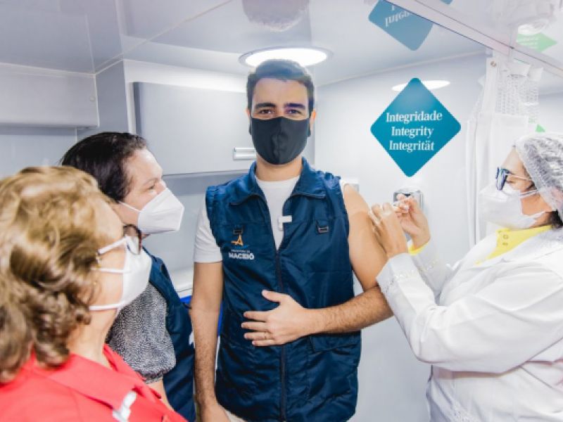 23 de julho de 2021 No ônibus da Vacinação, prefeito JHC toma a primeira dose da vacina contra a Covid-19