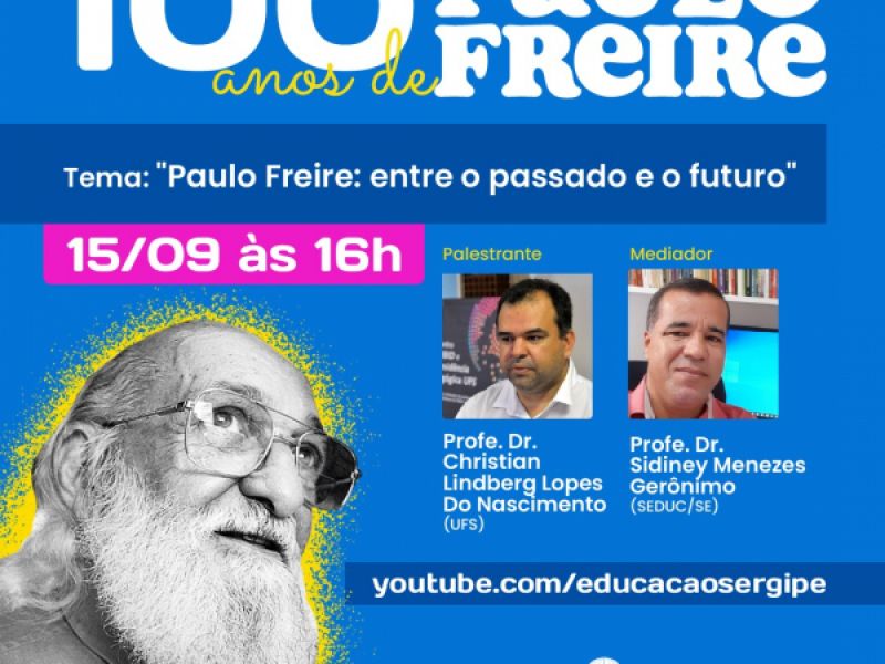 14 de setembro de 2021 Centenário Paulo Freire: Seduc realiza última live da série em comemoração aos 100 anos do pensador brasileiro