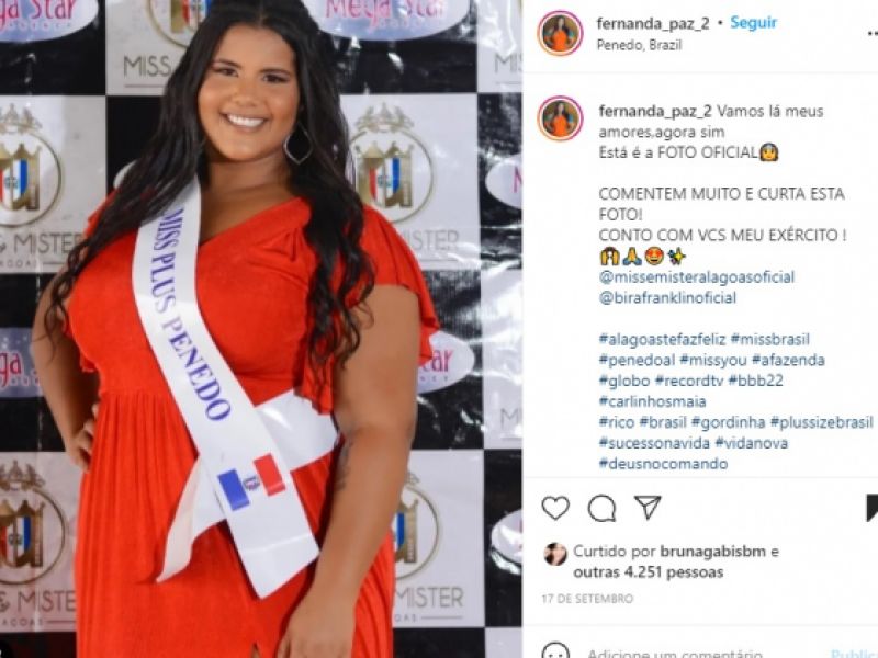 20 de outubro de 2021 Miss Plus Size de Penedo concorre a título estadual no dia 24 deste mês em Arapiraca