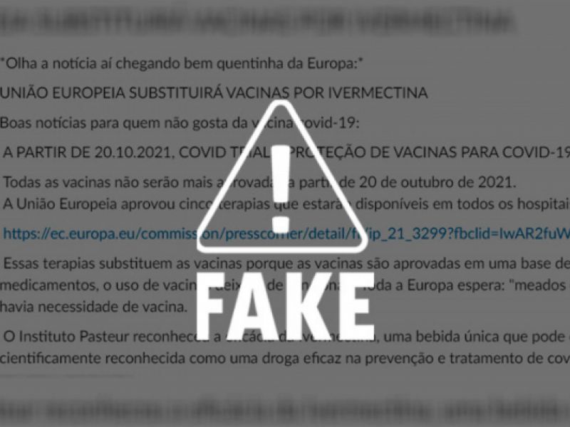 20 de outubro de 2021 Alagoas Sem fake: é falso que União Europeia iria substituir vacinas por ivermectina