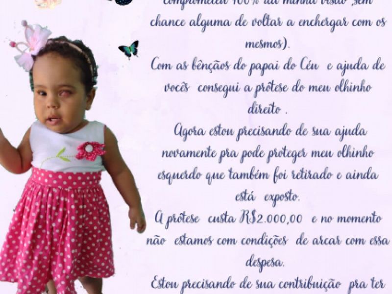 30 de novembro de 2021 Corrente do bem: criança de Penedo necessita de nova prótese para proteger região ocular