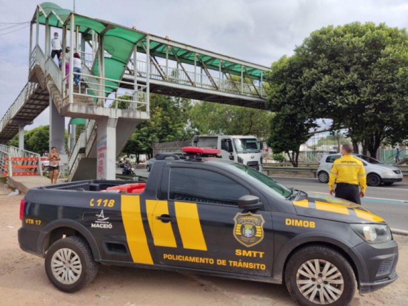 12 de janeiro de 2022 SMTT orienta pedestres sobre travessia segura com a interdição na passarela do Canaã