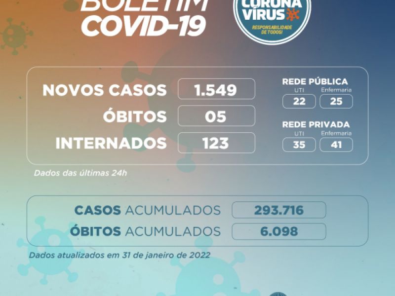 1 de fevereiro de 2022 Sergipe registra 1.549 novos casos de Covid-19 e cinco óbitos nesta segunda, 31