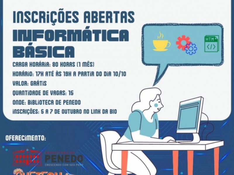 6 de outubro de 2022 Inscrições abertas para nova turma em curso gratuito de informática básica em Penedo
