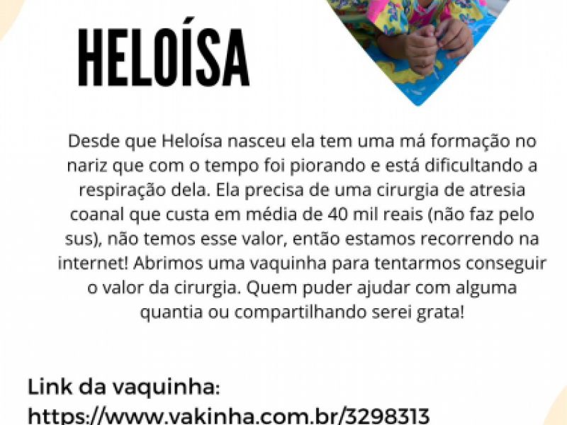 29 de novembro de 2022 Vaquinha é criada para ajudar criança de Igreja Nova que sofre com má formação no nariz