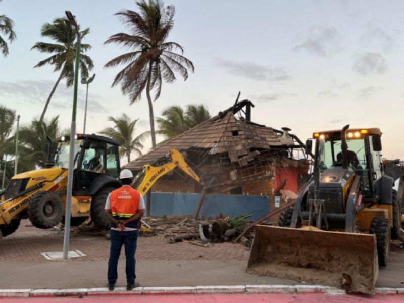 Barraca de praia com risco de colapso após incêndio é demolida