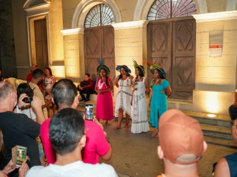 19 de outubro de 2023 Grupo de mulheres indígenas encanta público com músicastradicionais no primeiro dia do Femupe