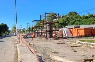11 de junho de 2025 Obra da ponte Penedo/Neópolis entra em nova etapa com a instalação de mais dois pilares
