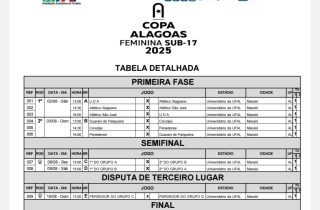 11 de julho de 2025 FAF divulga tabela da Copa Alagoas Feminina Sub-17 2025: Penedense fica no Grupo B