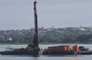 30 de julho de 2025 Obras da ponte Penedo/Neópolis avançam com perfuração e instalação de novos pilares