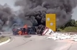3 de fevereiro de 2026 Carreta capota, incendeia e provoca interdição parcial da BR-101 em Porto Real do Colégio