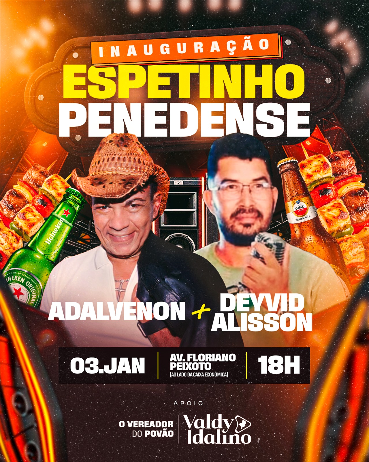O Centro de Penedo passa a contar, a partir do próximo sábado, 03 de janeiro, com mais um espaço de lazer e gastronomia que promete movimentar a área comercial da cidade. Trata-se da inauguração do Espetinho Penedense, um novo ponto de encontro para quem aprecia boa comida, música e um ambiente descontraído.