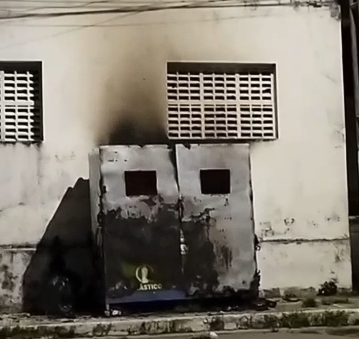 Após o ocorrido, populares atearam fogo no equipamento, que ficou completamente destruído