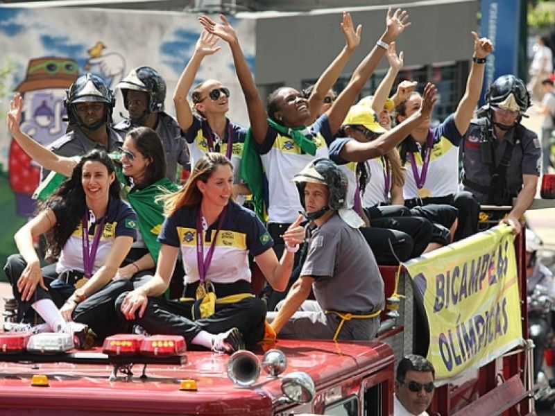 Medalhistas de ouro, meninas do vôlei desfilam em carro aberto
