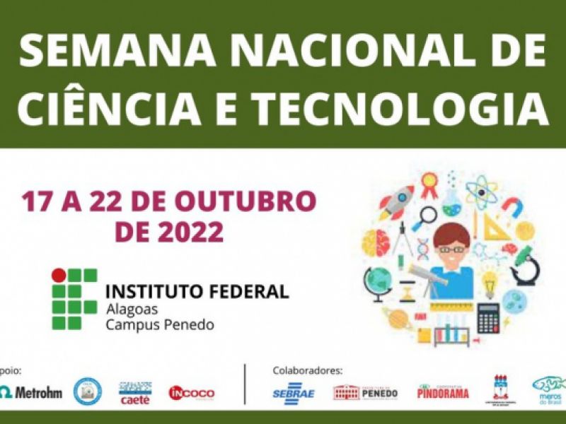 16 de outubro de 2022 Com atividades abertas à comunidade, Semana de Ciência e Tecnologia começa nesta segunda, 17, no Ifal de Penedo