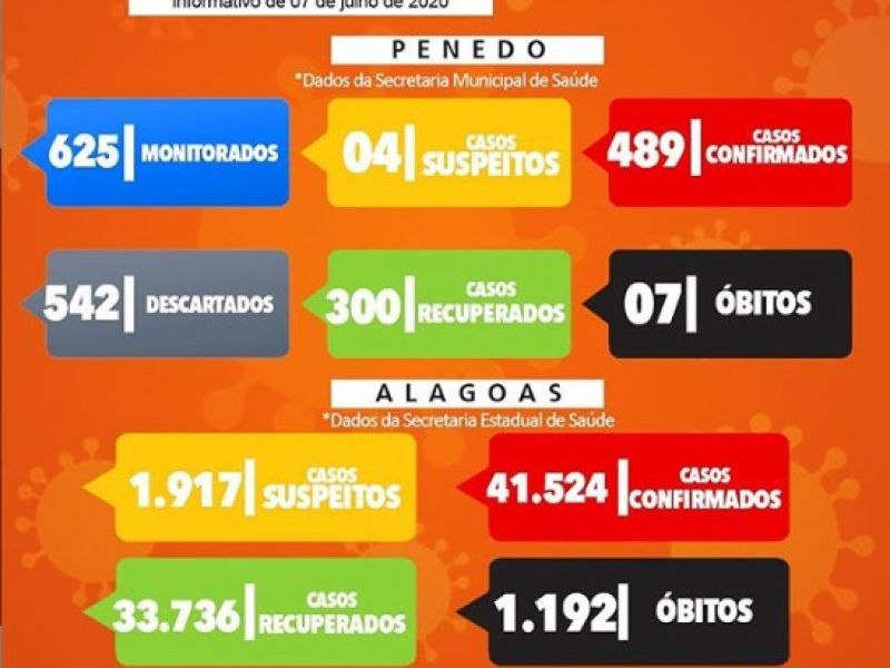 7 de julho de 2020 Alagoas tem 41.524 casos da Covid-19 e 1.192 óbitos, aponta boletim desta terça, 07
