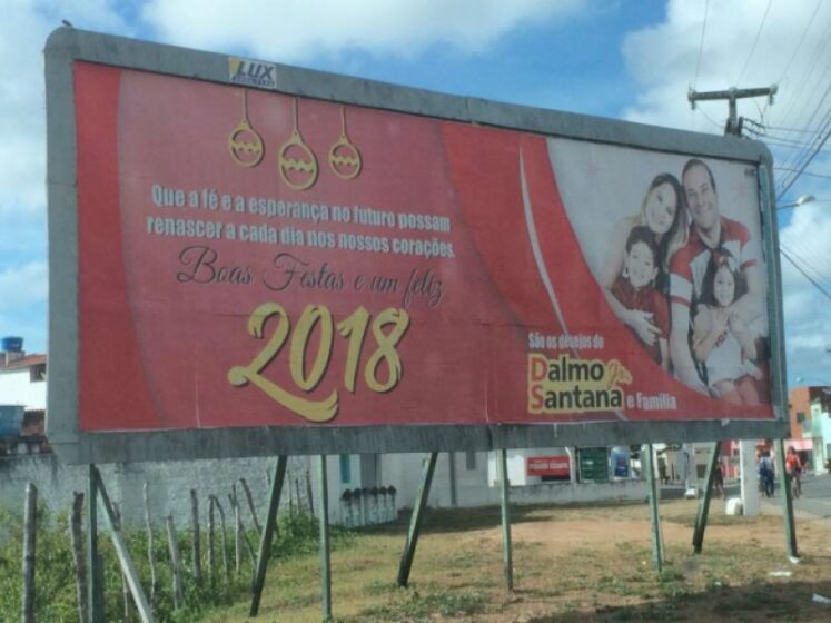 O final de semana em Piaçabuçu começou no ritmo das cores e dos palanques que ainda não foram desarmados desde o último pleito eleitoral que teve como vitorioso nas urnas o prefeito Djalma Beltrão (PRB). Em dois pontos da cidade, outdoors estampam a imagem do ex-prefeito Dalmo Santana Jr e sua família, desejando boas festas à população de Piaçabuçu. O fato chamou a atenção de quem passa pelo local, sendo levantada a situação legal da tributação, necessária para o desenvolvimento de qualquer município.