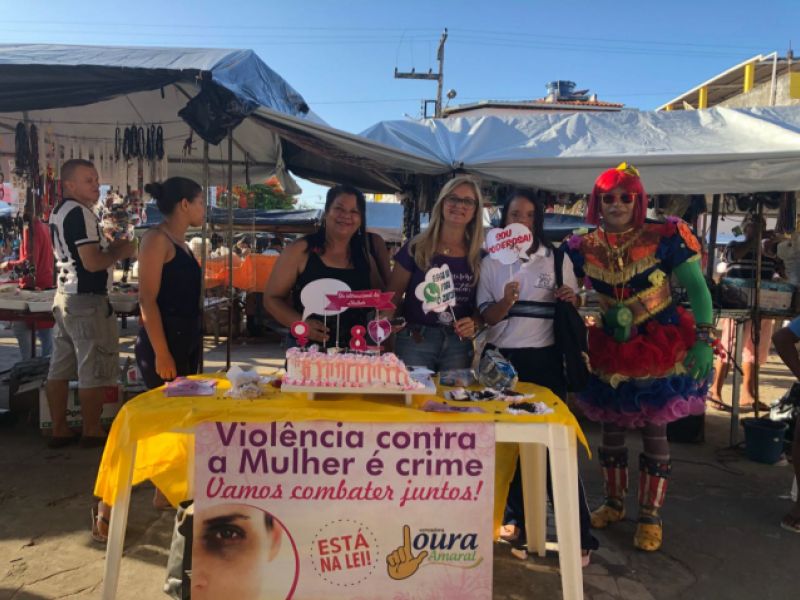 11 de março de 2018 Com distribuição de bolo e batons, vereadora Loura Amaral dá um tom feminino à feira de Piaçabuçu