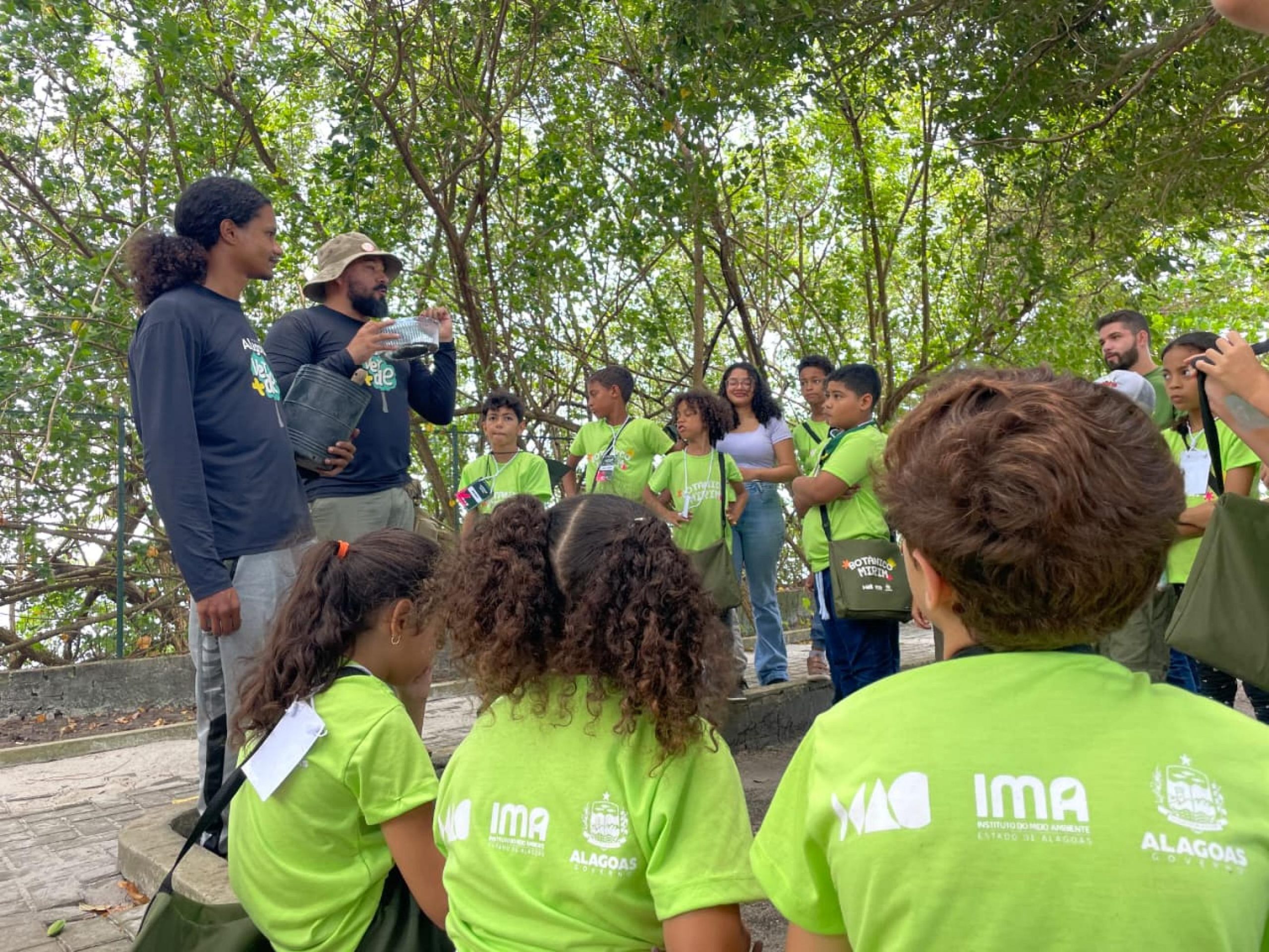 Mudas de plantas, sementes e terra preta nas mãos. Assim foi a manhã das crianças participantes do Botânico Mirim, na quarta-feira (19), ao visitar o viveiro de plantas nativas do Instituto do Meio Ambiente do Estado de Alagoas (IMA/AL).