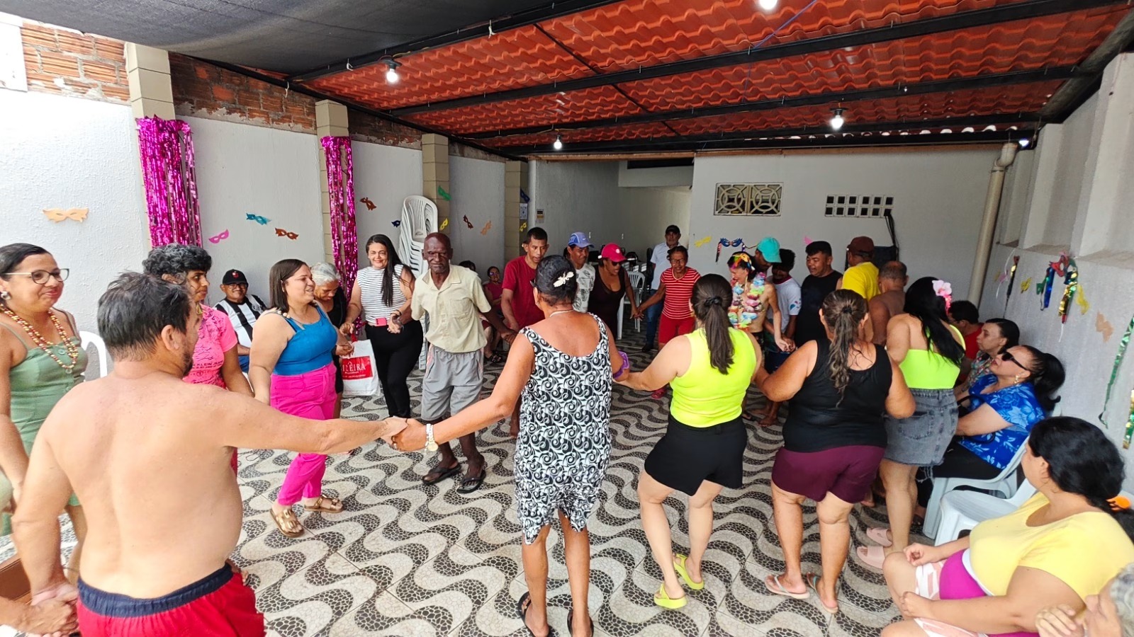Durante a programação, os participantes dançaram ao som de músicas carnavalescas, aproveitaram banho de piscina e se refrescaram com a distribuição de picolés, em uma manhã marcada pela alegria e integração.