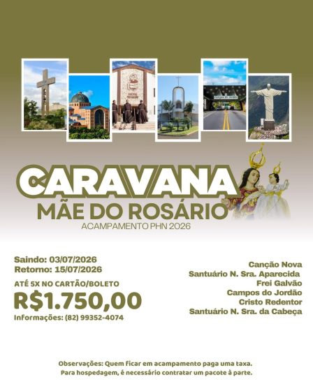 Durante a viagem, os participantes poderão visitar a Canção Nova, o Santuário Nacional de Aparecida, Frei Galvão, Campos do Jordão, o Cristo Redentor e o Santuário Nossa Senhora da Cabeça.