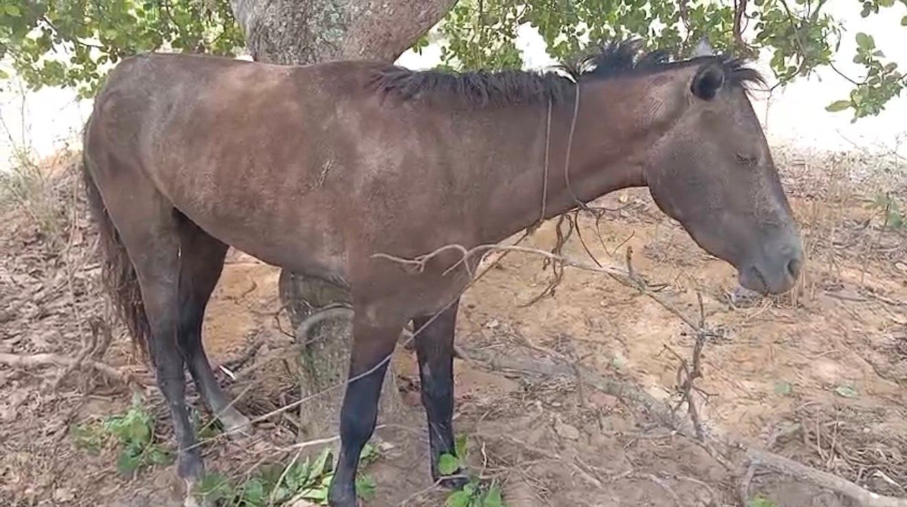 Segundo ela, o cavalo estava com ferimentos causados pelo fio utilizado para amarrá-lo. “O bichinho estava todo ralado, você vê a situação e é de chorar. Eu não aguentei nem olhar, comecei a chorar. Quem faz isso com um animal, sinceramente…”, disse, demonstrando revolta.