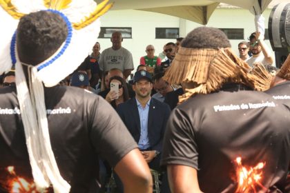 Antes do início da cerimônia, uma quebra de protocolo para honrar uma antiga tradição: integrantes da etnia Xokó, que vivem às margens do Rio São Francisco, realizaram um ritual para trazer boas energias ao local. O cacique Bá Xokó aproveitou para brincar que está negociando um amistoso no CD. “Na nossa aldeia somos apaixonados por futebol, já temos dois títulos municipais e sempre chegamos nas finais. Vou negociar para jogarmos no campo”, disse ele, que presenteou Xaud com uma pulseira como amuleto de sorte.